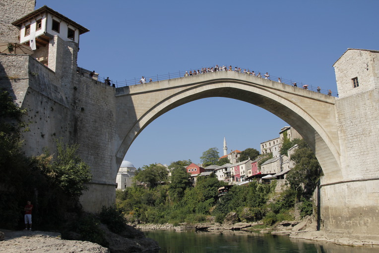 (보)스타리 모스트(Stari Most) 다리는 약 천개가 넘는 하얀 돌로 건축되었으며 건축된 발칸에서 가장 아름다운 다리중 하나이다.