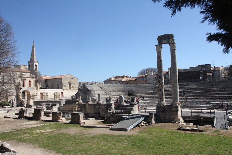아를의 고대 원형 극장 터는 원형 계단의 모습은 남아 있었지만 기둥만 두개 덩그렇게 서 있었다.