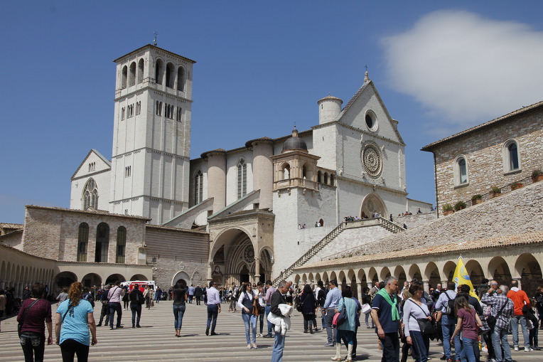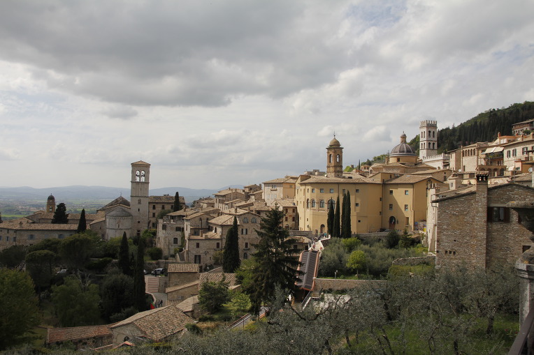 이탈리아 중부 움브리아 지방의 아시시(Assisi)는 빈자(貧者:가난하고 낮은 사람)의 성자로 칭송받는 성 프란시스코 (S.Francesco 1182~1226)의 고향이다. 프란시스코의 모습 주위로 평화를 상징하는 비둘기나 양들이 그려진 장식이나 그림, 조각들이 여기저기에 있다. 성 프란시스코는 가장 사랑받는 성자 중 한 명으로 꼽히며, 아시시는 주요한 가톨릭 성지 순례지중의 하나이다.