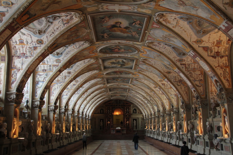 알프레히트5세가 수집한 그리스‧로마풍의 흉상이 도열하고 있고, 화려한 벽화로 장식된 벽이 천정과