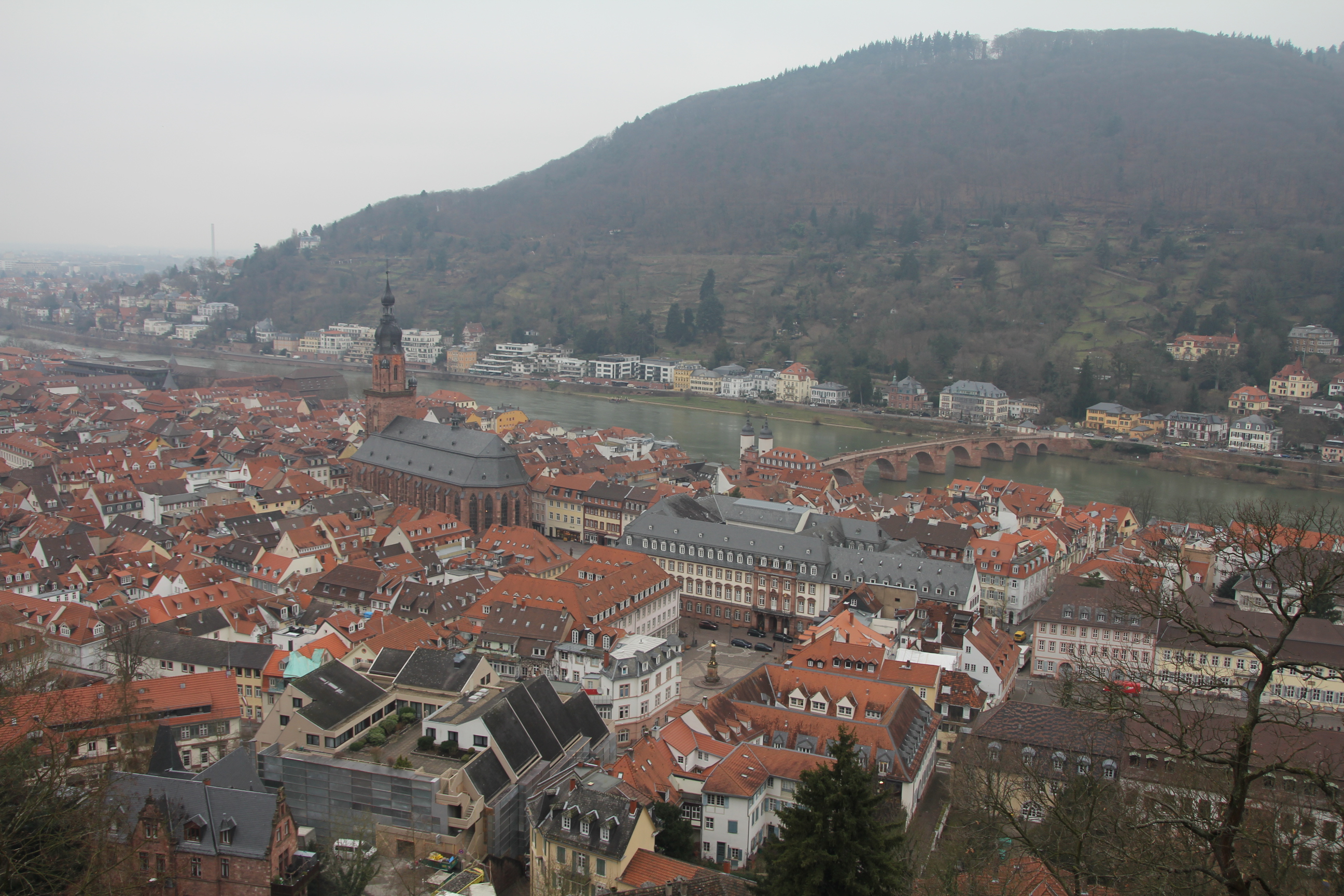 지붕들을 잘 조망할 수 있다. 네카르강 건너편엔 하이델베르크 대학과 철학자의 길이 보인