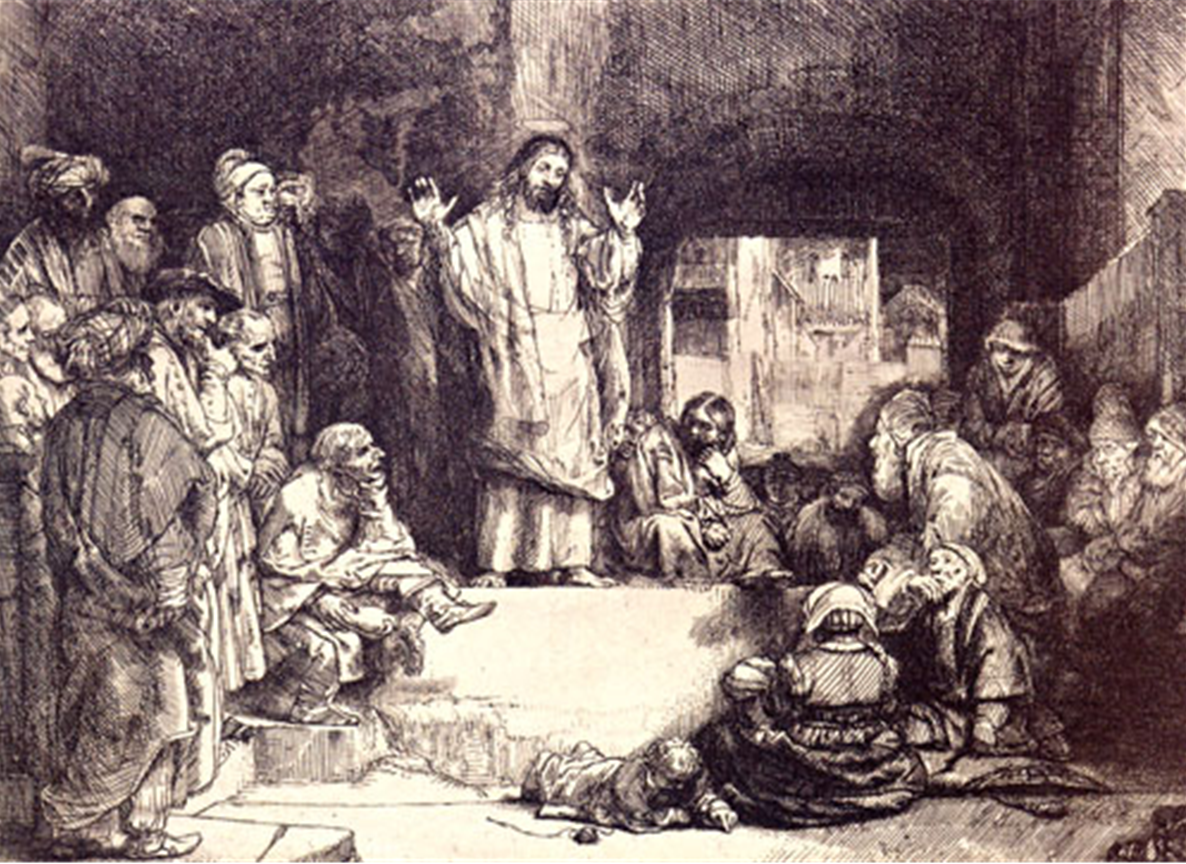 표작 <설교하는 예수>(1643∼49)는 마태복음 19장에 나오는 사건들을 표현한 것으로, 손을