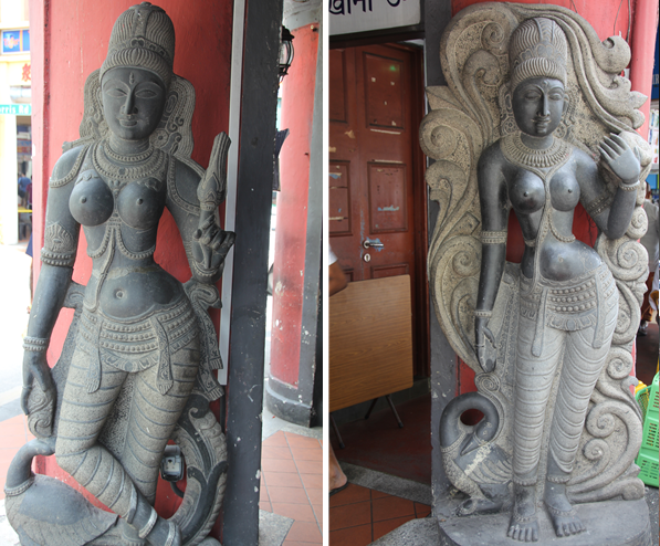 서로 다른 포즈의 힌두교 사원의 문지기 신상(神像)