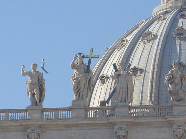 성 베드로 성당 정면 테라스 위의 聖人(성인) 조각상 들