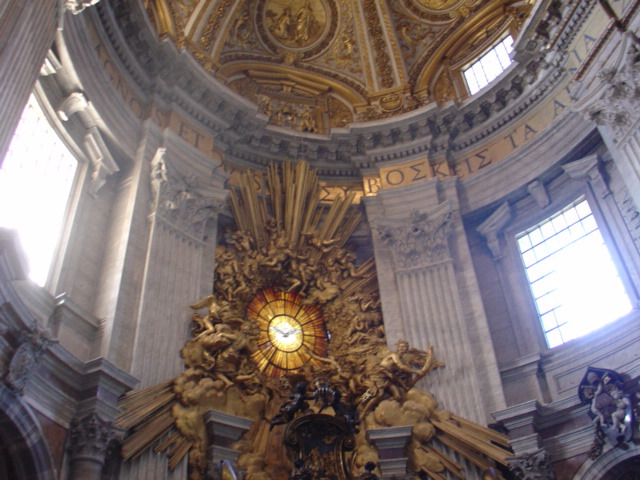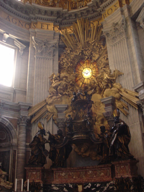 한편 시스티나 성당 옆에 있는 베드로 성당은 그 규모가 가히 세계 최대라고 한다. 가톨릭의 최고 수장인 교황님이 계시고, 성당내의 많은 보물, 성물, 역대 교황님의 무덤과 자취들이 있다는 점으로 볼 때 성당의 최고 우두머리라는 것에 이의를 달지 못할 것이다. 베드로 성당의 형식적인 내용을 보더라도 천정은 금덩이로 되어 있고 성당 제대 뒤쪽 창문에 표현된 성령의 비둘기는 빛을 통과 시키는 대리석으로 만들어져 있다. 내부에는 청동 주조로 만들어진 베르니니의 天蓋(천개를 비롯하여 피에타 상, 베드로상 등 유명 걸작품이 성당 내부 이곳저곳에 보석처럼 자리하고 있다. 성당이라 기다 보다 오히려 예술 박물관이라고 해도 손색이 없어 보였다.