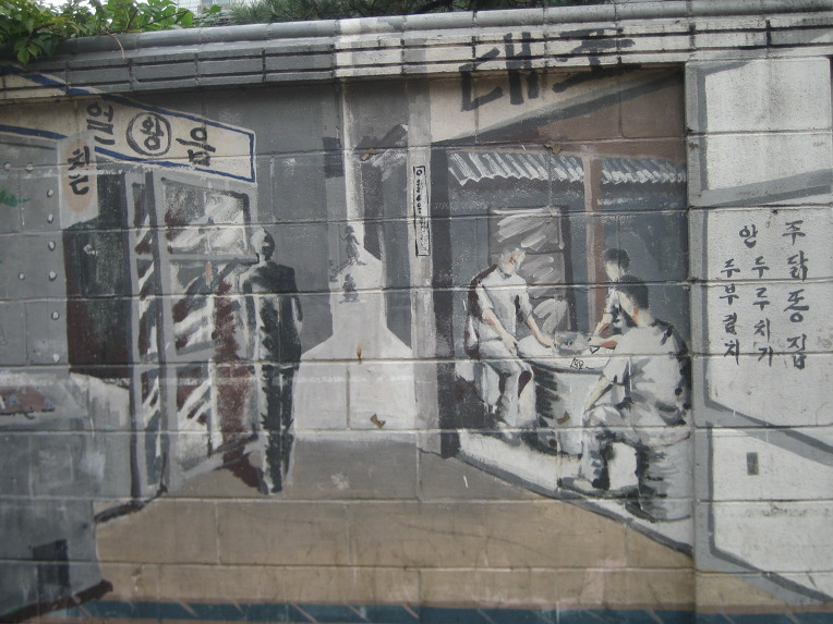 나의 옛 기억을 확인시켜주려는 듯이 도로 옆 블록 담벼락에 그림이 그려져 있었다. 누군가는 조악한 그림이라 할른 지 몰라도, 옛 시절의 모습을 보여주려는 작가의 마음이 전해져 왔다. 조금 더 가다보니 길모퉁이에 이제는 보기 드문 공중 목욕탕이 나타났다. 제대로 된 시간 여행을 하고 있구나라는 생각이 들었다.