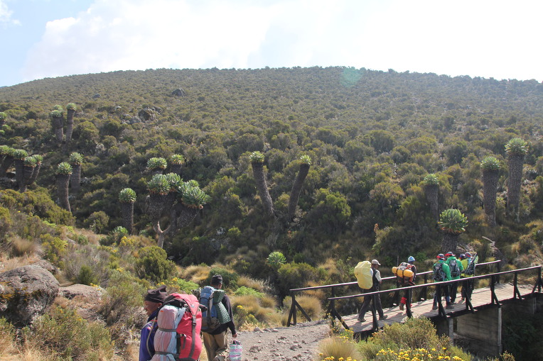 밑으로 내려올수록 고산증의 증세는 씻은 듯이 없어졌고, 풀과 나무가 없는 고원 사막지대를 지나 풀이 자라나는 고원에서는 광활한 주위를 감상하며 둘러보는 여유가 생겼다. 고도가 낮아지자 나무의 키들이 점점 커지고 마침내 열대 우림의 깊은 숲속에 들어오게 되었다. 고도에 따른 식물들의 수직 분포를 제대로 느낄 수 있었다. Horombo 산장 근처에서만 보이는 독특한 모양의 자이언트 그라운드셀(Giant Groundsel, Senecia Kilimanjari)과 Mandra 산장 근처의 열대 우림에서 만난 Black & white colobus monkey는 덤으로 만난 행운이었다.