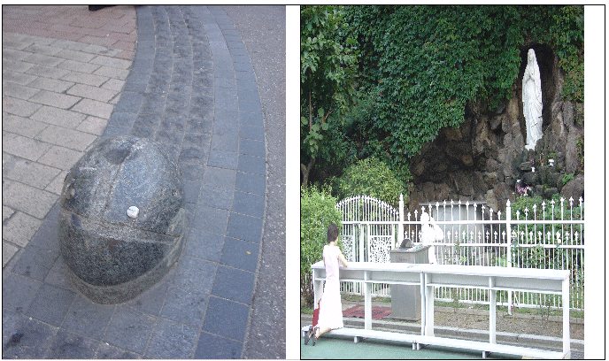 보도블록과 차도 사이에는 무당벌레 모습의 돌기둥이 보도 경계를 따라 놓여져 있다. 도시 공간의 아름다운 모습을 보는 것 같아 즐거운 마음이 들었다. 조금 전 문화재를 보러온 사람들을 배려 부족에 대한 섭섭했던 느낌은 이 무당벌레 보도 경계석과 파란 하늘을 보니 금방 녹아 없어져 버렸다.