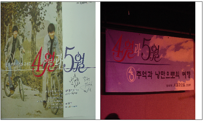 드디어 YWCA 뒤편 ‘청개구리’의 태동지인 ‘마루’홀에 들어갔다. 수많은 포크 스타들이 이 곳에서 노래하고 흔적을 남겼다. ‘마루’홀 입구에서는 예매 담당자가 신분증을 대조하며 예매 리스트를 확인하고 입장표를 주었다. 공연 시간이 가까워서인지 예매 담당자가 가지고 있던 예매 리스트는 오신 분들의 명단이 거의 체크된 상태였다. 담당자는 ‘4월과5월’의 공연 팸플릿과 사오모 모임 안내가 씌어진 명함 크기의 금색 card를 주었다.
