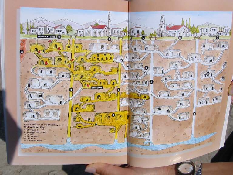 동굴은 지하 속에서 이리저리 연결되었는데, 지하도시의 수직 단면을 본다면 흡사 개미집처럼 생겼다. 우치히사르 지역에는 이런 땅속 지하도시가 여럿 있으며 그 규모가 지하 10 몇층까지 내려가는 것도 있다고 한다.
