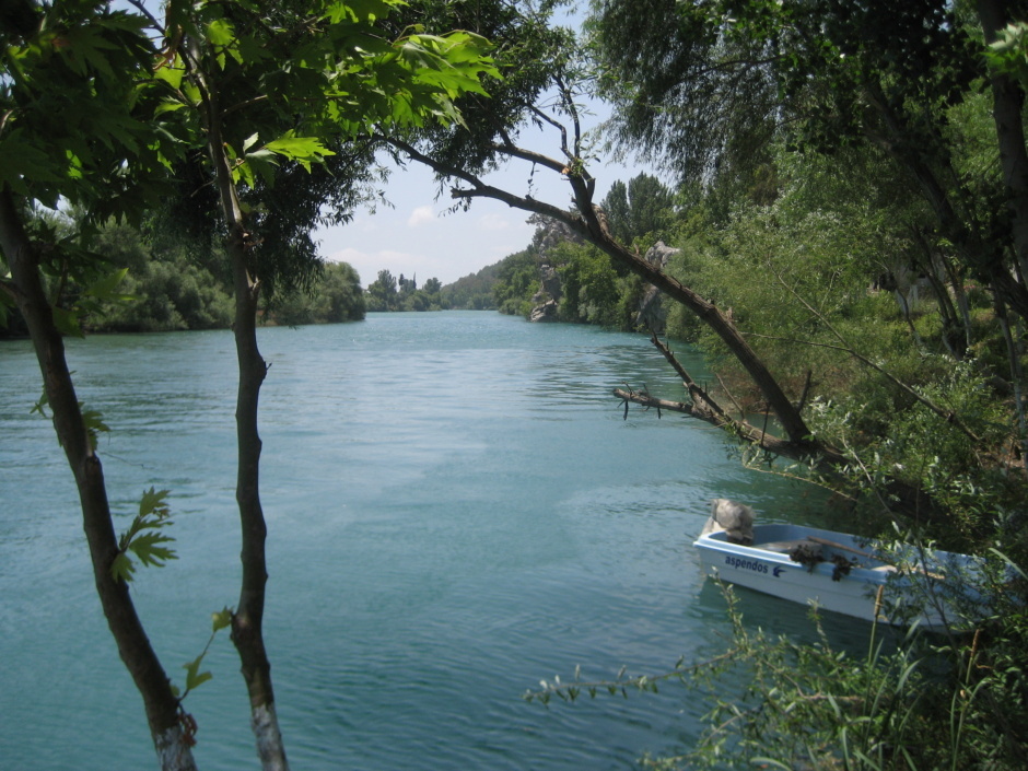 한참을 달린 후 점심을 먹기 위해 어느 강변 식당에 닿았다. 마침 이 식당 바로 앞쪽에 제법 큰(?) 강물이 흐르고 있었는데 강변에는 나무들이 제법 숲을 형성하고 있었다. 터키에서는 이때껏 산을 넘을 때나 평원을 거쳐 이동하는 동안 강을 거의 보지 못했으며 더구나 강에 물이 차있는 모습은 볼 수가 없었다. 강물 줄기들은 대개 乾川(건천)이어서 물이 거의 보이지 않았고 물이 있더라도 강물 줄기가 바닥으로 조금씩 흘러가는 게 대부분이었다.