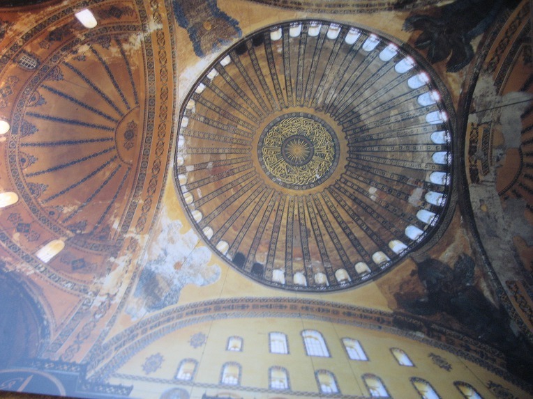 둥근 돔 모양의 지붕을 가진 이 사원에 들어서면 커다란 돔과 그 아래 축구장(?)만 한 바닥 크기에 입이 저절로 벌어진다. 다른 것은 몰라도 당시 사람들이 사원 중앙의 엄청난 크기의 돔을 어떻게 올렸을까하는 점은 놀랍고도 불가사이하다. 높은 천장이나 벽에 그려진 여러 모자이크 성화들을 보느라 조금만 오래 쳐다보아도 목이 아파 고개를 숙여야만 했다. 사원 내부를 한참이나 넋을 놓고 서 있었던 우리 일행 한 분은 기독교 신자이었는데, 그 분의 감상에 따르면 소위 ‘은혜를 받는 것 같다’라는 표현을 하였다.