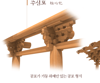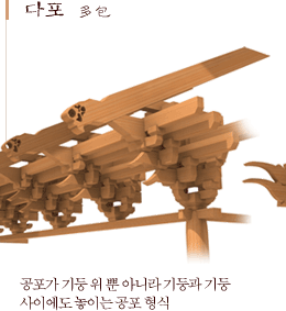 기둥 사이에도 놓이는 건축 양식을 다포(多包) 양식이라 한다.