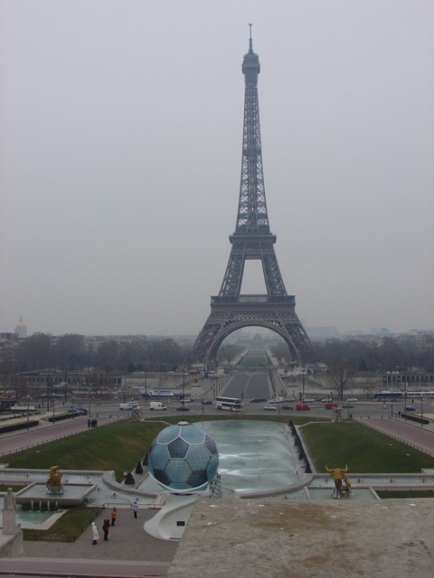 월드컵 개최국이었음을 상징하는 월드컵 공 모형이 에펠탑 앞에 놓여 있다.